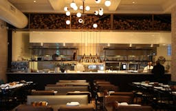 With its soaring ceiling, antiqued mirrors and open kitchen view, our main dining room is perfect for parties of varying sizes.